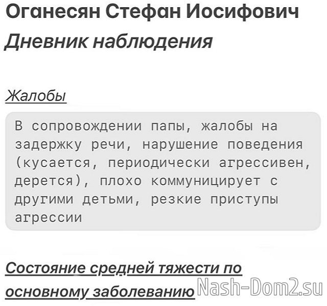 Бывший участник телепроекта Иосиф Оганесян возмущен тем, что выписки его ребенка снова попали в социальную сеть. Он не планировал рассказывать все подробности о здоровье сына и не считает нужным афишировать свои проблемы, но из медицинской базы, без его разрешения, были взяты данные о первоначальном осмотре Стефана и эту информацию позже Иосиф тоже разместил в личном блоге.