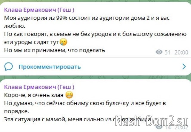 Бывшая участница телепроекта Клавдия Безверхова-Ермакович расстроилась, узнав новости о своей маме, но ещё больше её неприятно удивила ситуация, сложившаяся в социальных сетях. В гневе Клава удалилась из пабликов и решила взять перерыв от соцсетей.